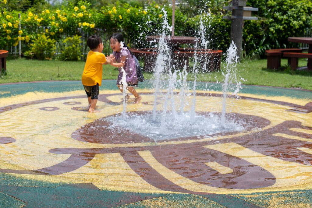 ✅ 夏季必玩的戲水噴泉+溜滑梯