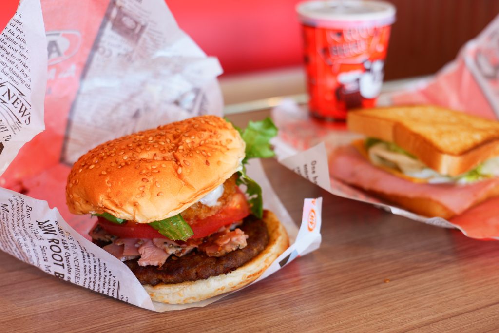 A&W的招牌漢堡!多汁的牛肉排、濃郁起司搭配特製醬料