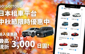 GO!GO!TOUR日本租車平台2025年中秋節限時優惠券!