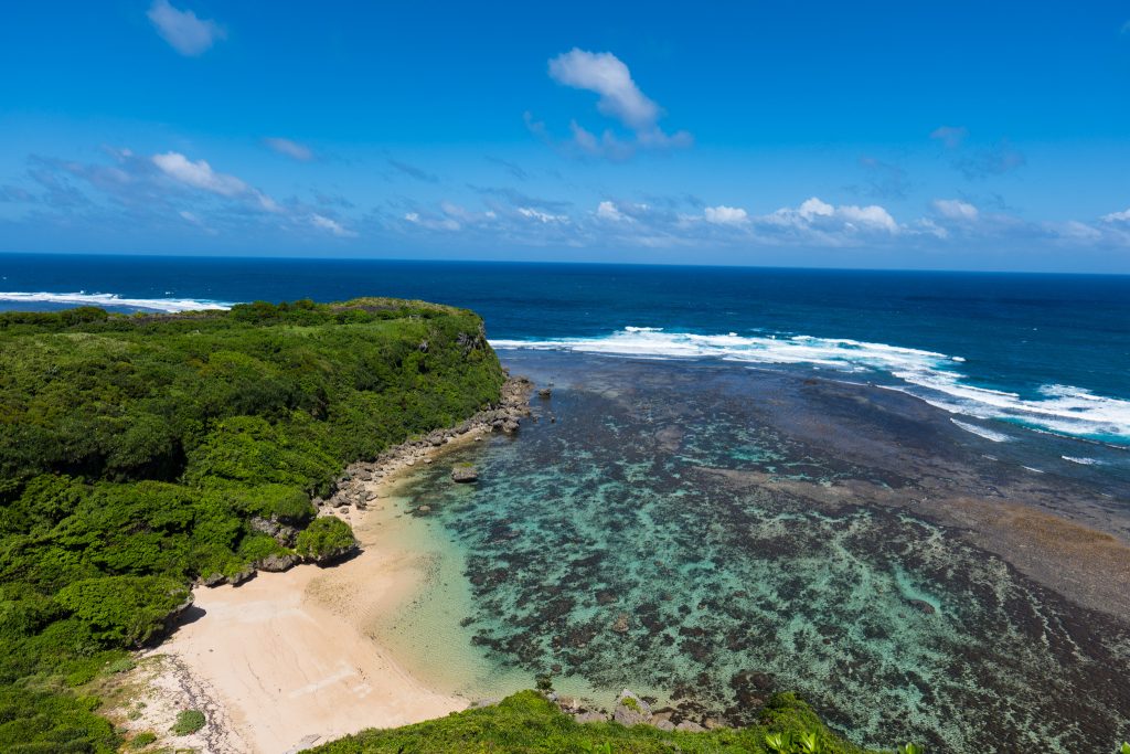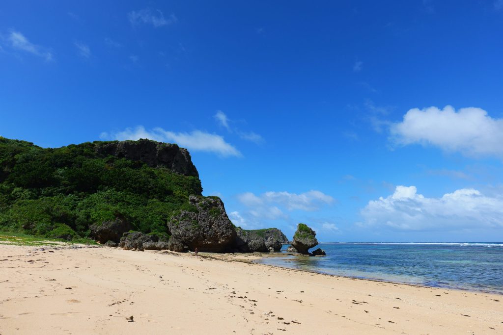 位於海中道路盡頭伊計島北側,以清澈透明的海水與細白沙灘聞名,非常適合浮潛與戲水。 - 幸福之崖(カフウバンタ)與阿庫納之濱(アクナハマ)