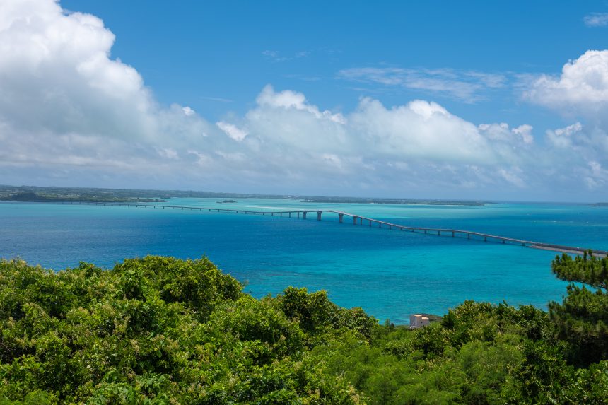 牧山展望台是個無論在哪裡拍都像風景畫的絕景地點。特別推薦拍攝將「宮古藍」與橫跨海上的伊良部大橋一併納入構圖,會讓人驚呼:「這就是沖繩的夢幻景色啊!」