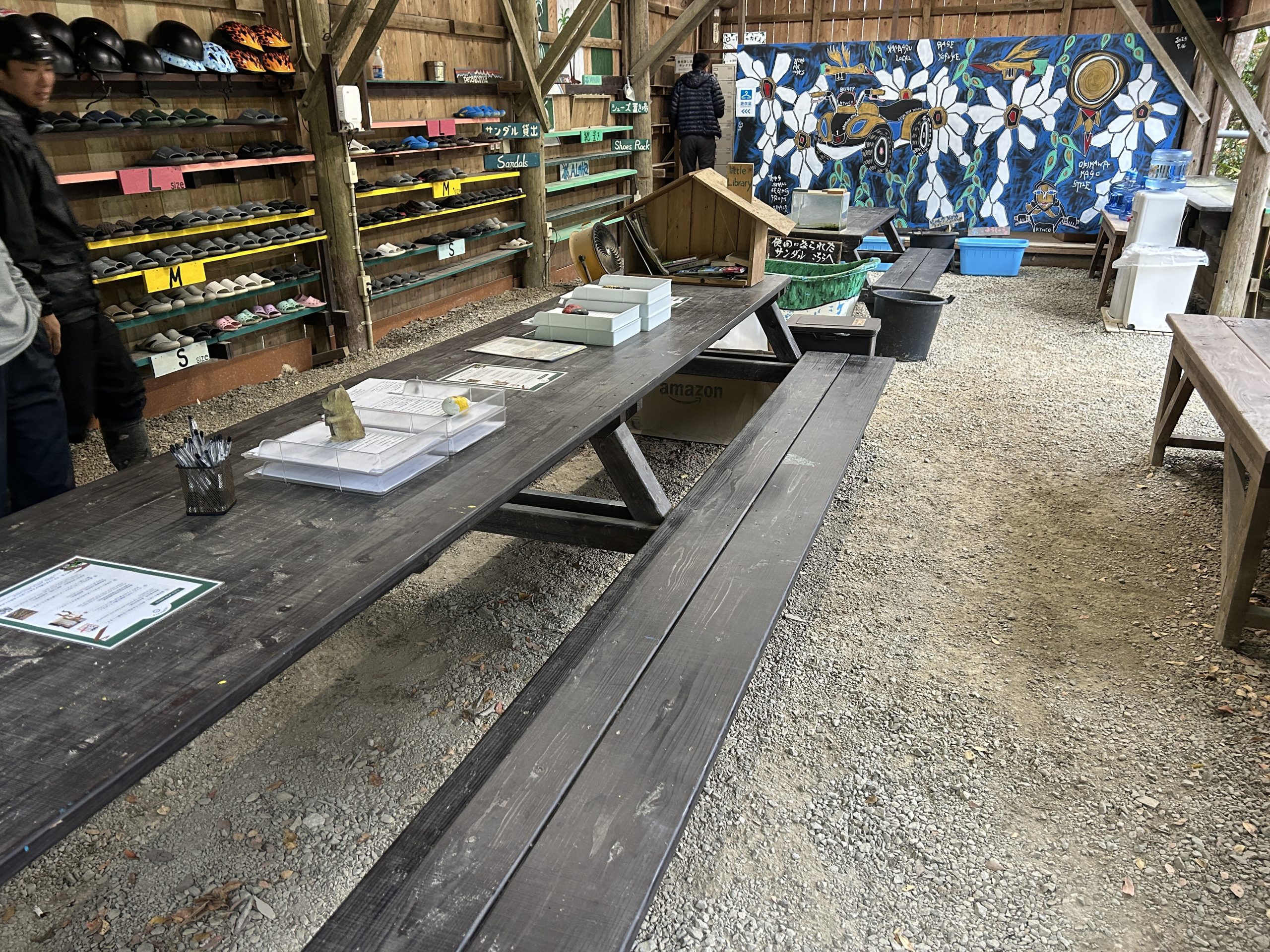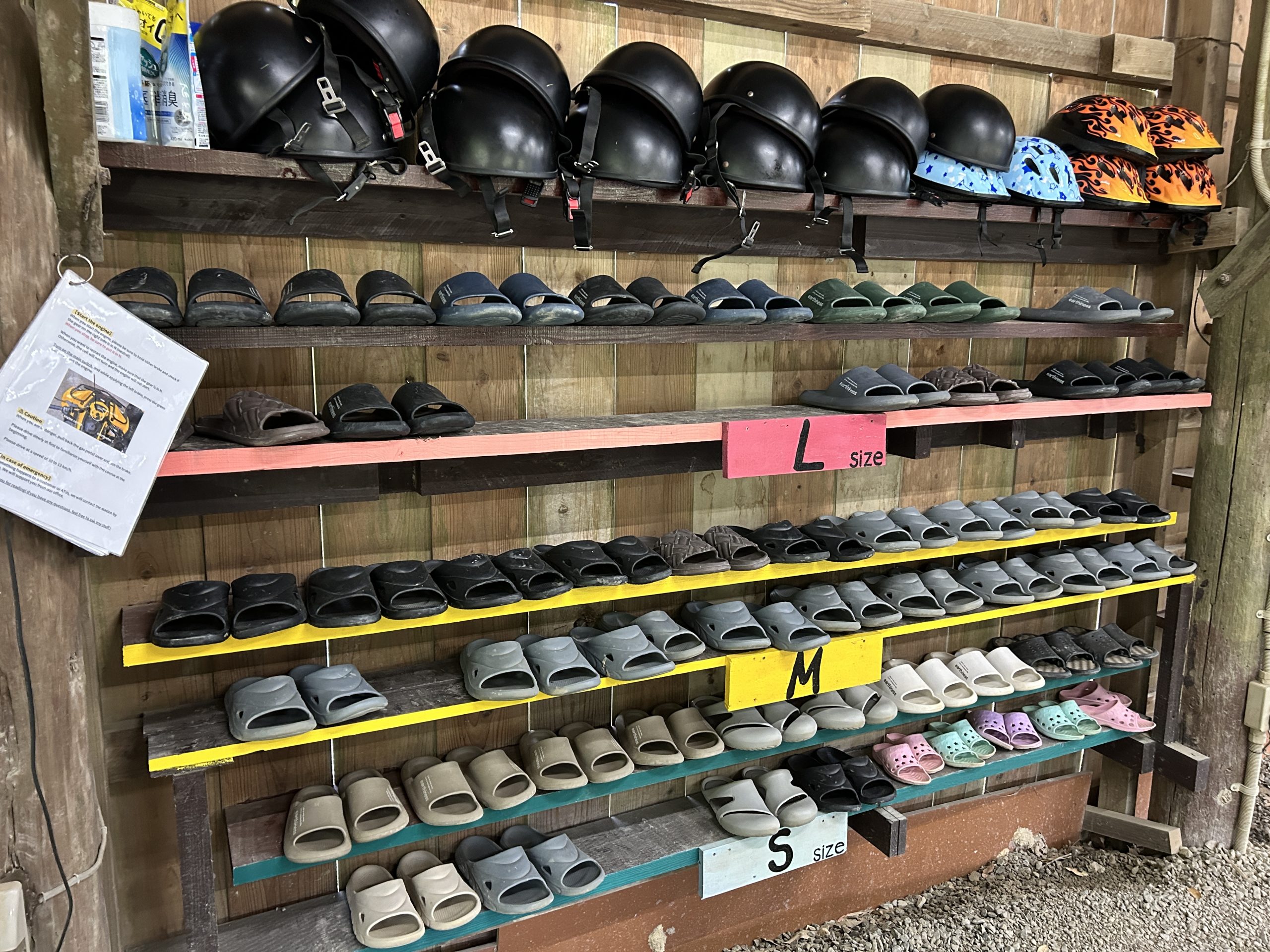 業者提供有免費安全帽、拖鞋、太陽眼鏡、鞋套,雨衣則是付費選購。還有可上鎖的置物櫃(免費),超級方便。