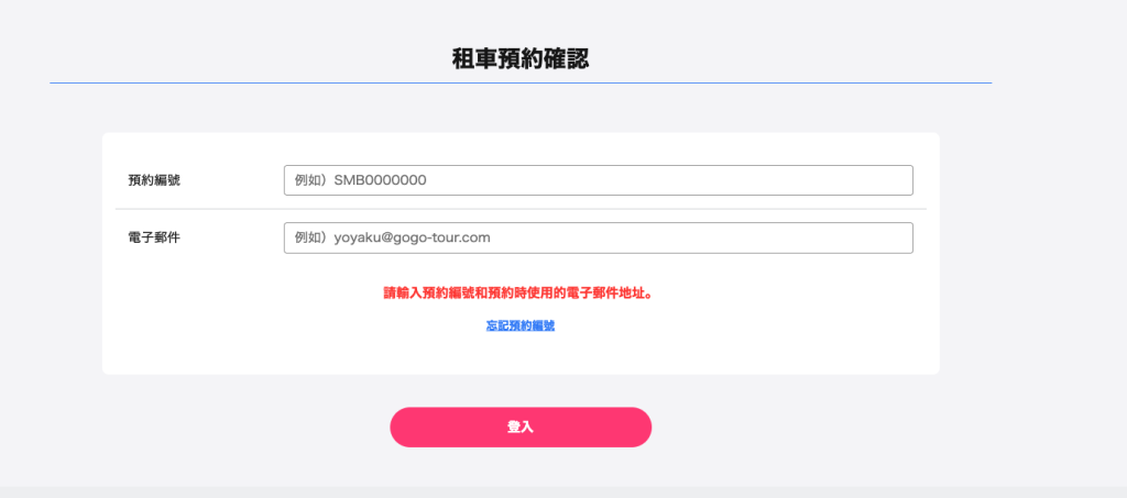 輸入您的預約編號及預約時填寫的電子郵件