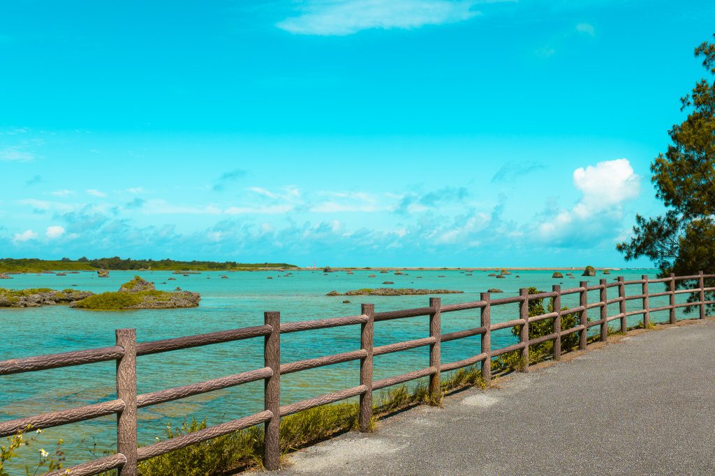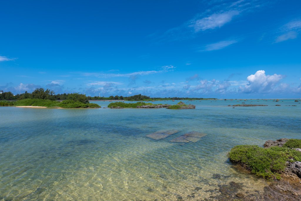 從下地島機場出發,開車僅需5分鐘即可抵達佐和田之濱。